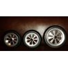 CNC machined aluminum wheel with anodized hub.Very light weight and versatile design.